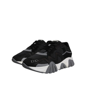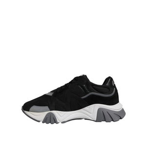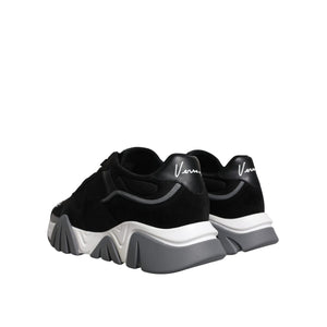 Versace Black Leather Neoprene Chunky Low Top Sneakers Squalo Shoes
