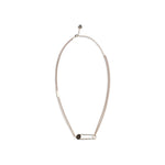 The Versace Safety Pin Necklace is a slim, contemporary accessory featuring an elegant double chain and the iconic Safety Pin pendant that defines its bold character. A label engraved with the Versace logo completes the design, while the lobster clasp closure ensures practicality and safety. A distinctive piece for a modern, recognizable style.