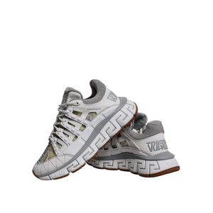 Versace White Trigreca Barocco Print Low Top Sneakers Shoes