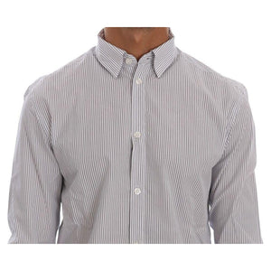 Frankie Morello White Blue Striped Casual Cotton Regular Fit Shirt