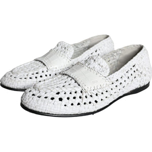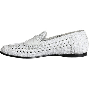 Dolce & Gabbana White Woven Leather Slip On Loafers Men Shoes