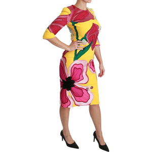 Dolce & Gabbana Yellow Floral Crystal Bodycon Sheath Dress