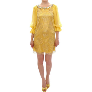 Gorgeous brand new with tags, 100% Authentic DOLCE & GABBANA Yellow Lace Crystal mini dress. This item comes from the exclusive MainLine Dolce & Gabbana Collection.