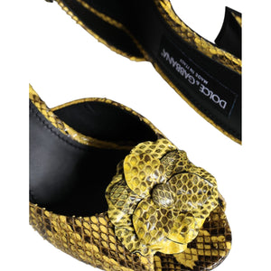 Dolce & Gabbana Yellow Leather Block Heels Slides Shoes