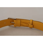 Dolce & Gabbana Yellow Leather Silver Tone Logo Metal Buckle Belt