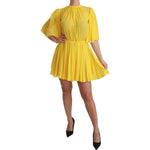 Dolce & Gabbana Yellow Pleated A-line Mini 100% Silk Dress